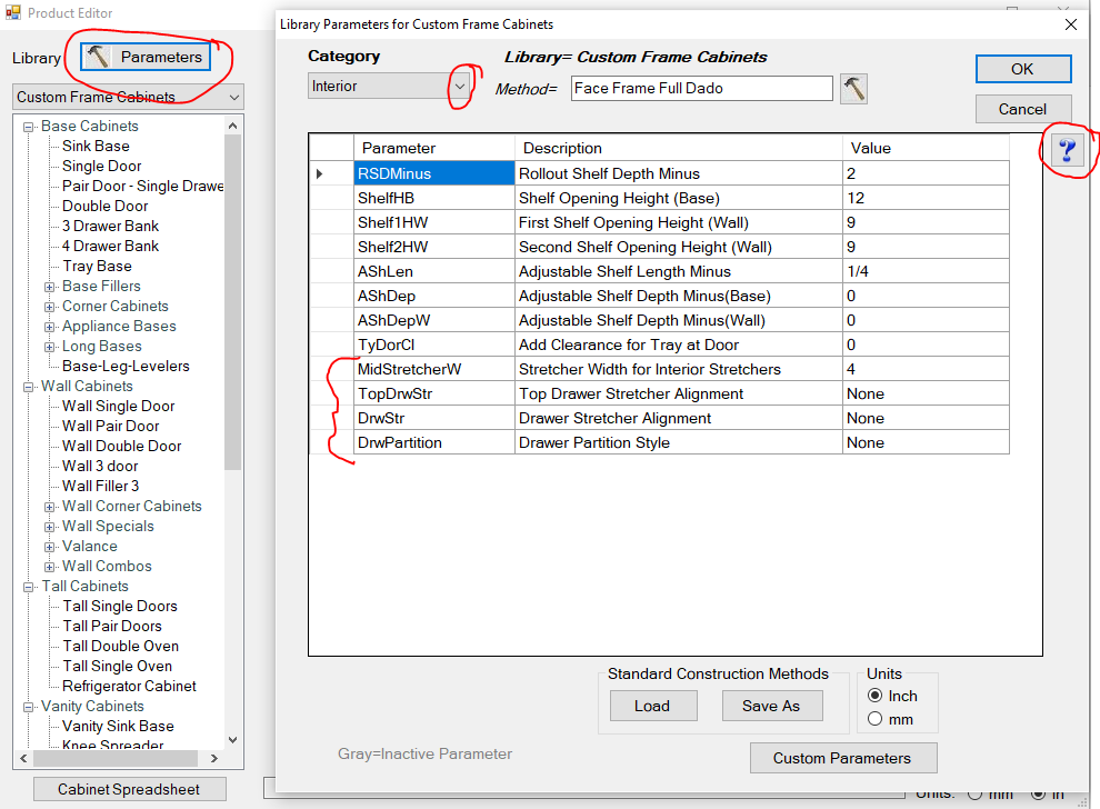 1) Within your parameters, you must add them under the Interior category. While in this section, you may click the blue question mark for additional information.