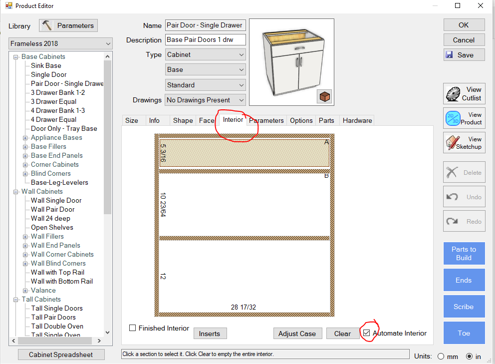 2) Once set up, activate them by selecting "Automate Interior" on the interior tab of each cabinet.