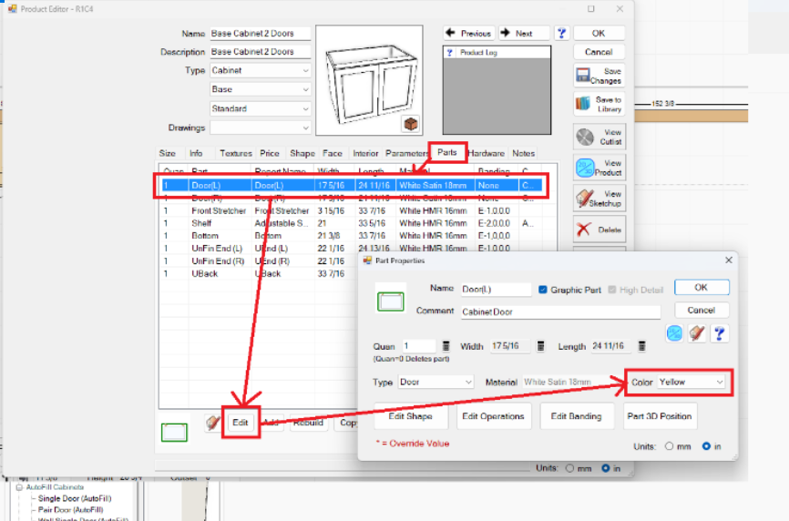 In order to change the color your parts in the Optimizer, you can go into the Parts tab of the Product Editor in Mozaik. Click Edit, and select the preferred color from the drop down: