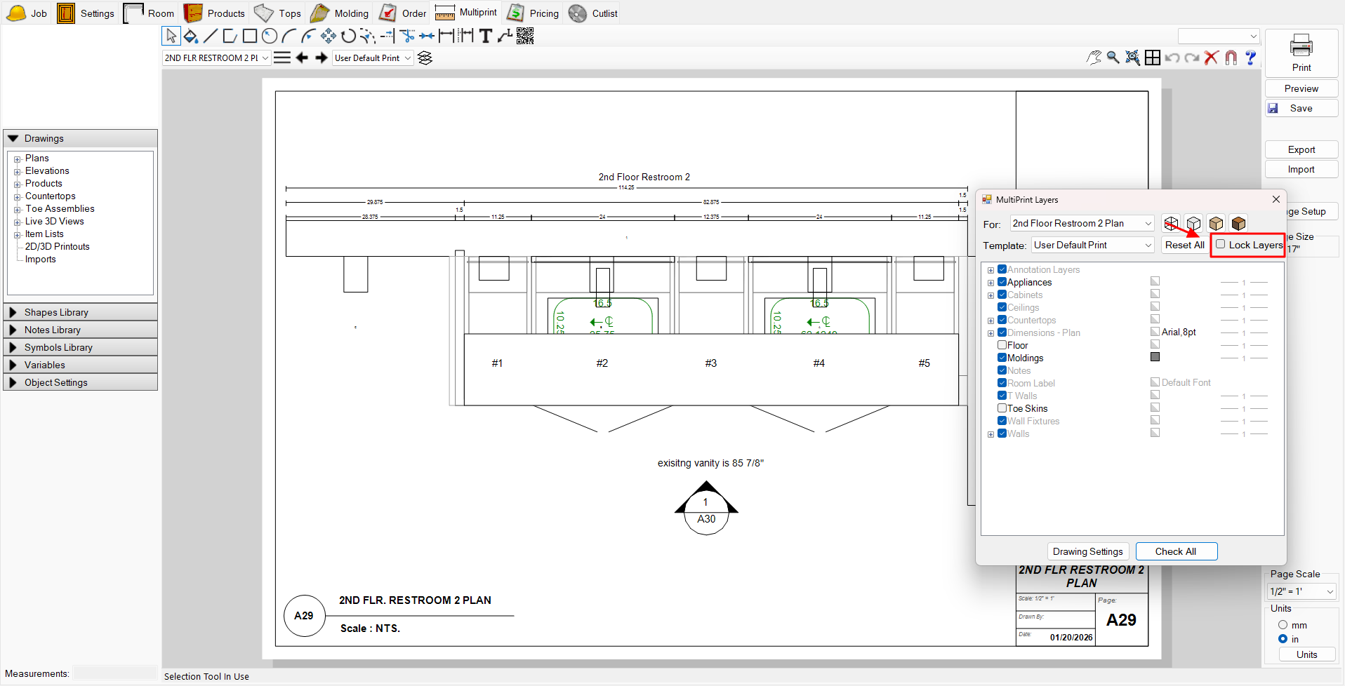Adjustments made in the Drawing Template affect how information is displayed in MultiPrint.