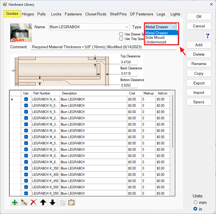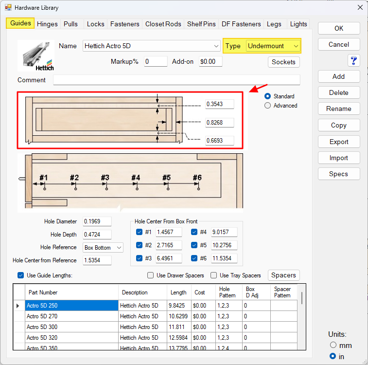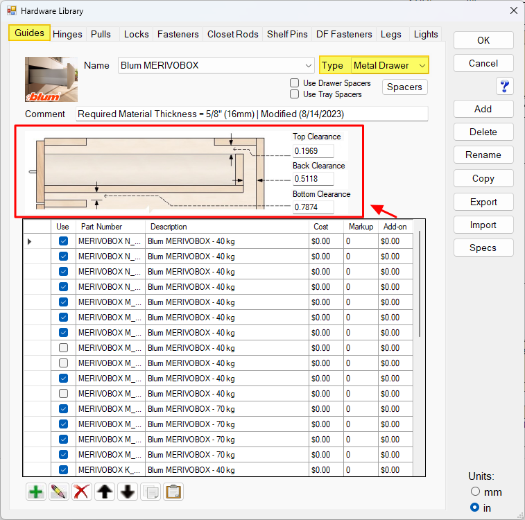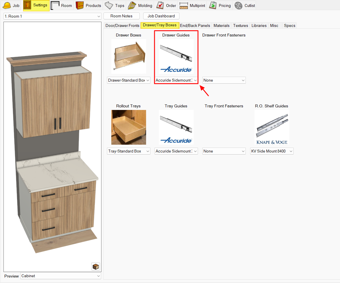 Understanding these settings ensures drawer boxes are sized correctly and that the proper hardware is selected during production.