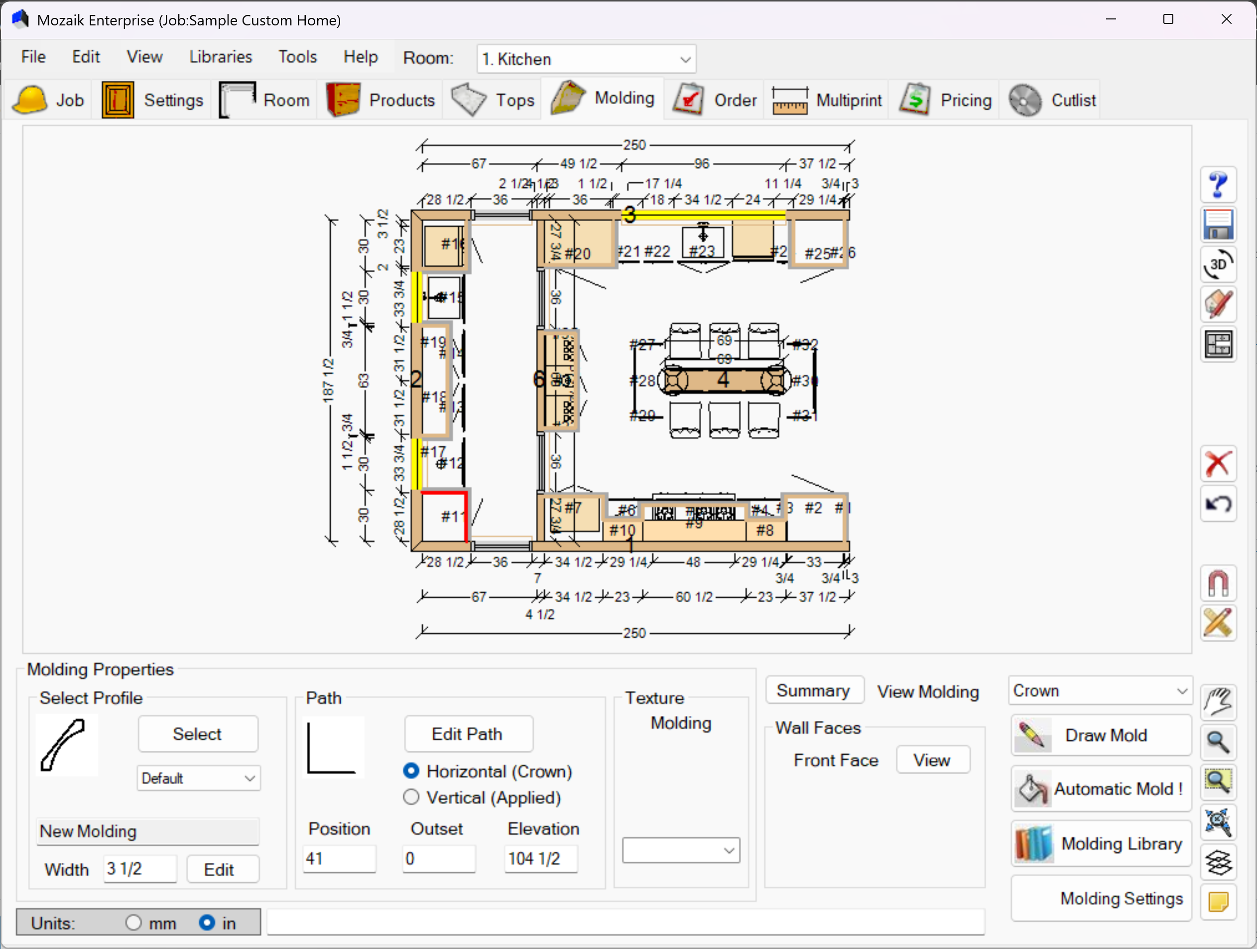- Use Automatic Mold first to quickly add standard molding throughout your design