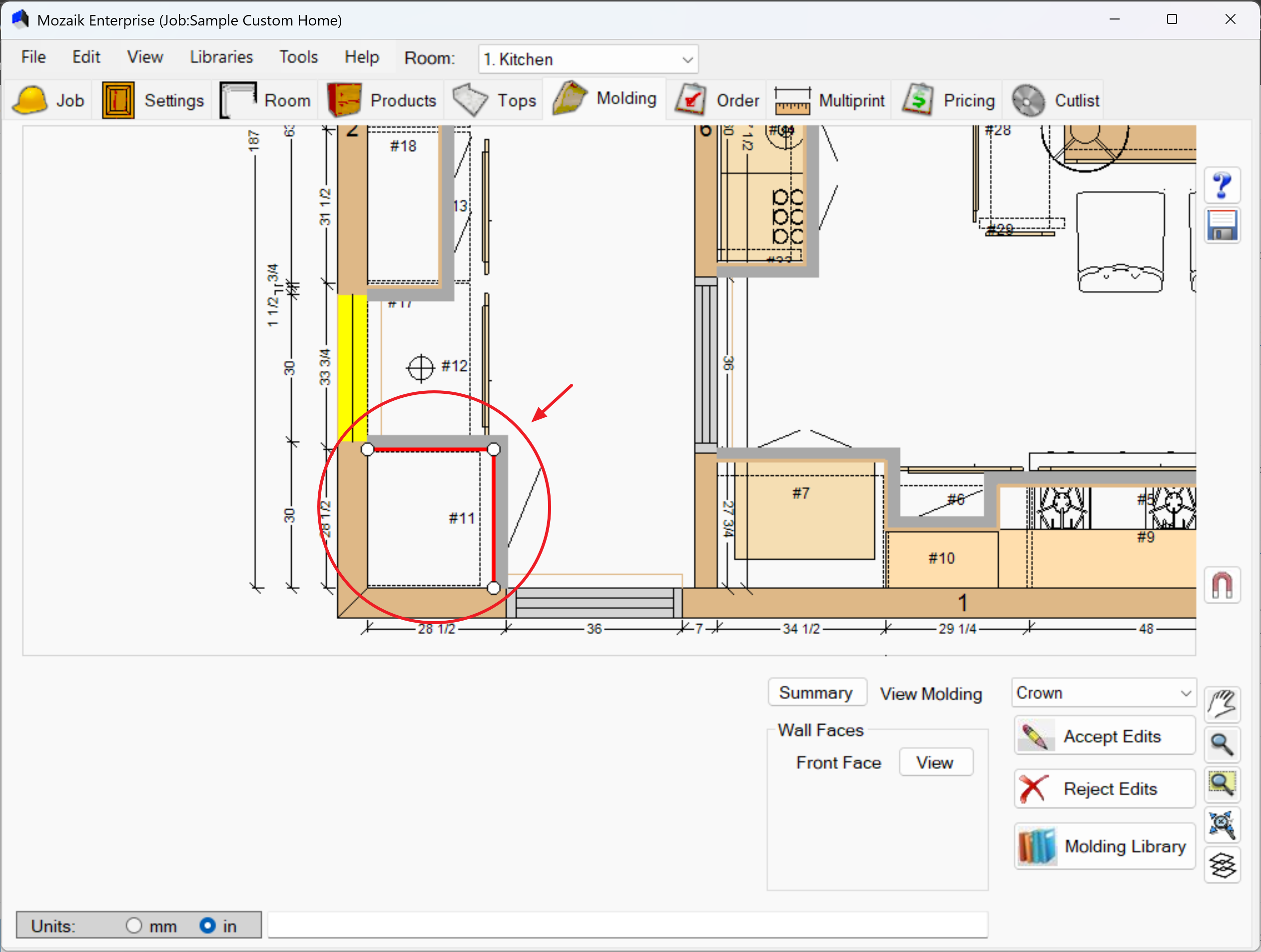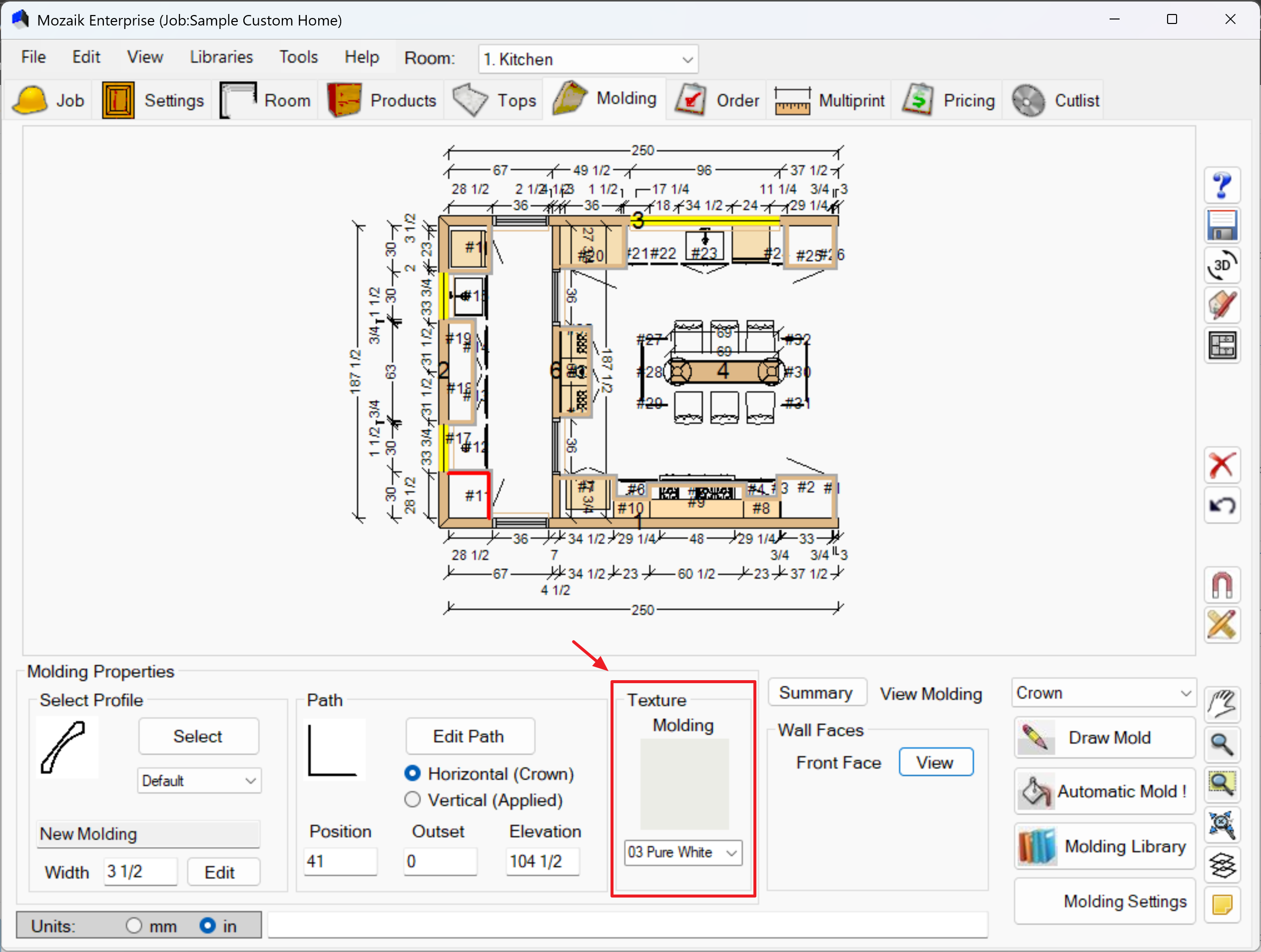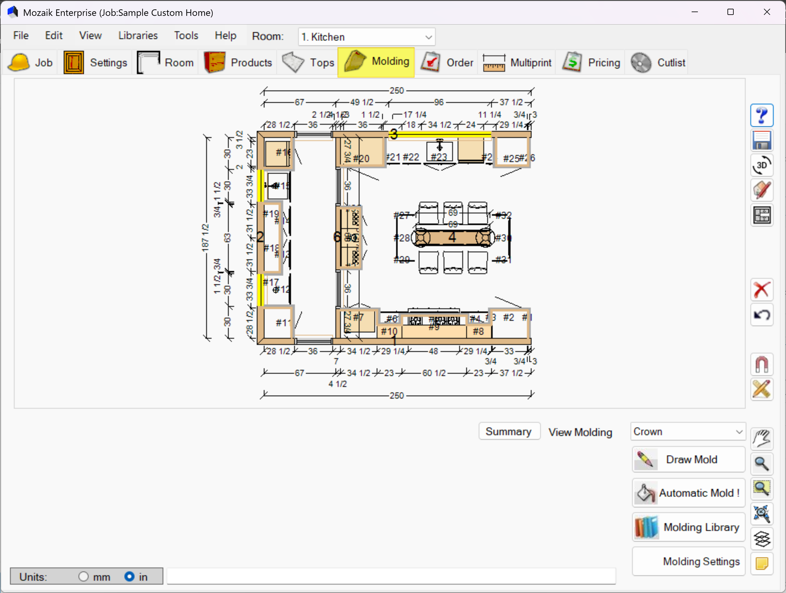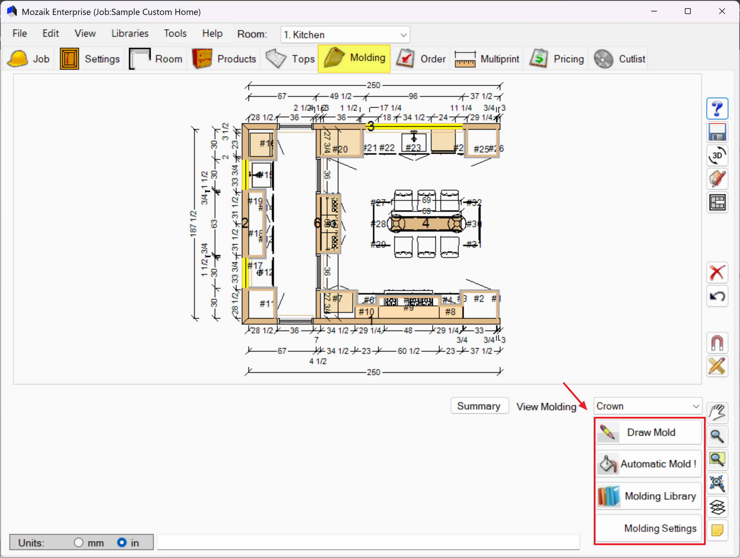 - Use the Molding Summary before finalizing your design to verify material quantities