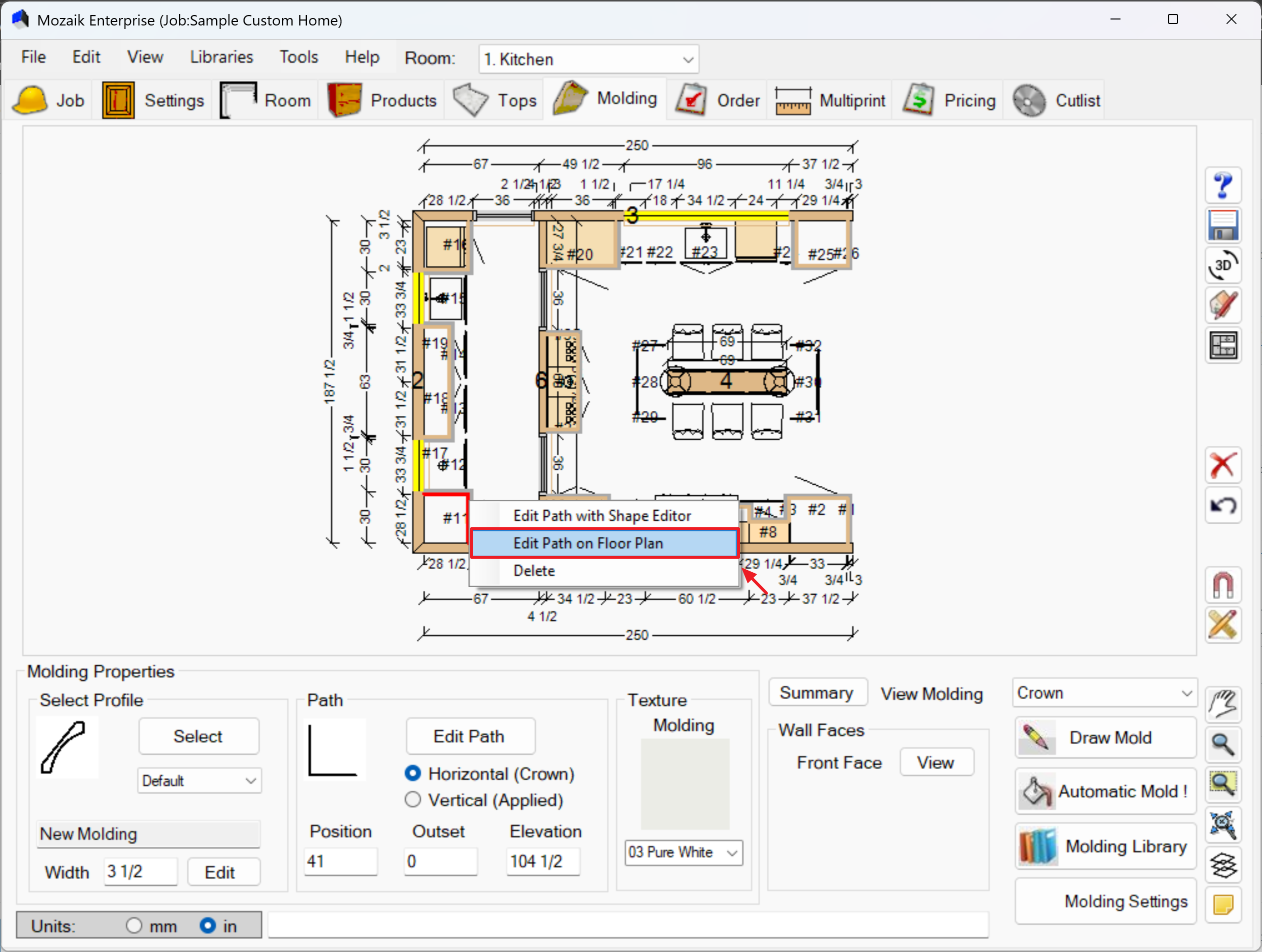 - If molding paths overlap incorrectly, use Edit Path on Floor Plan to adjust individual segments