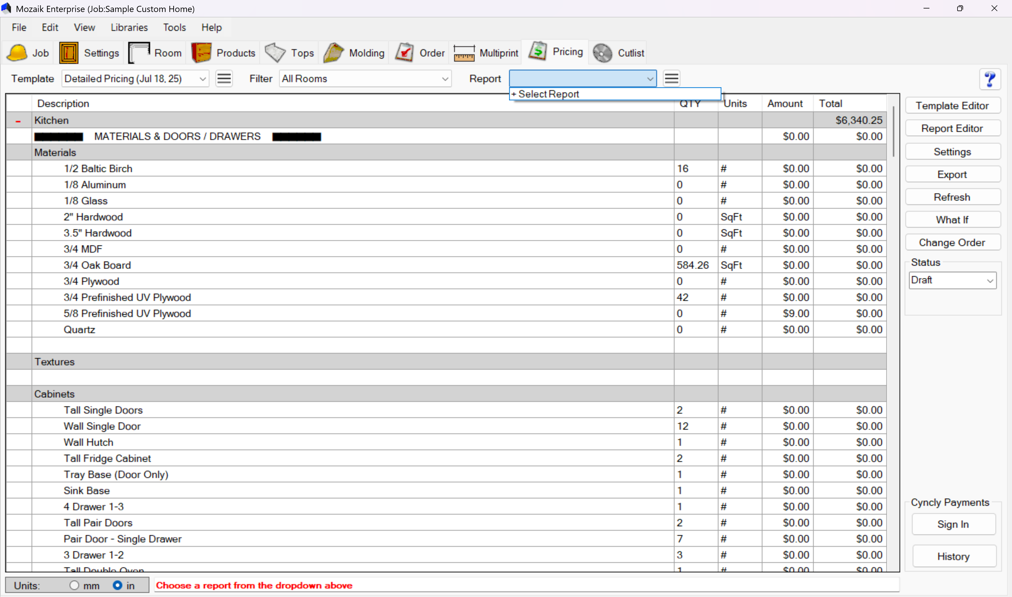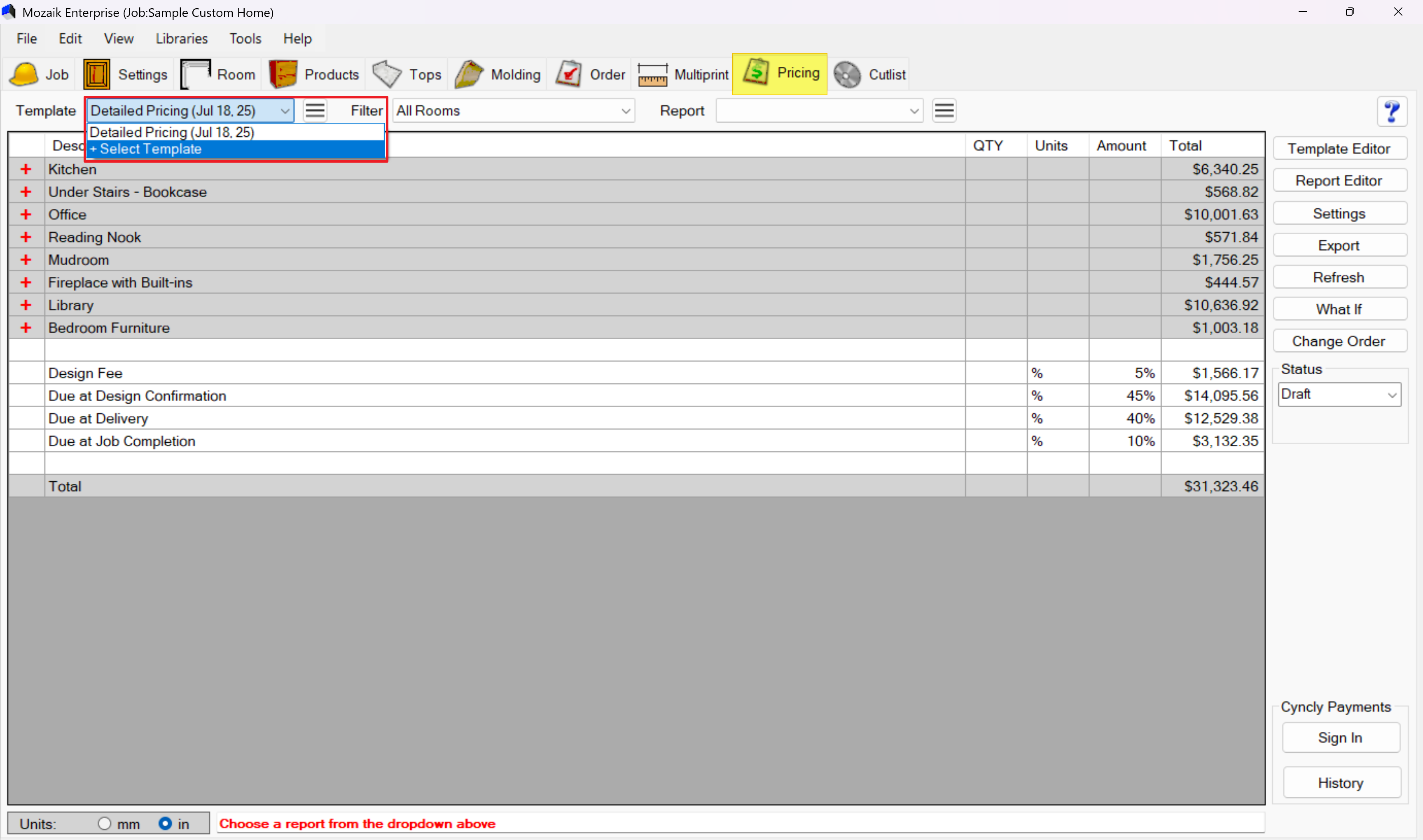 Once you have a pricing run, select a report format from the Report dropdown to create a professional document: