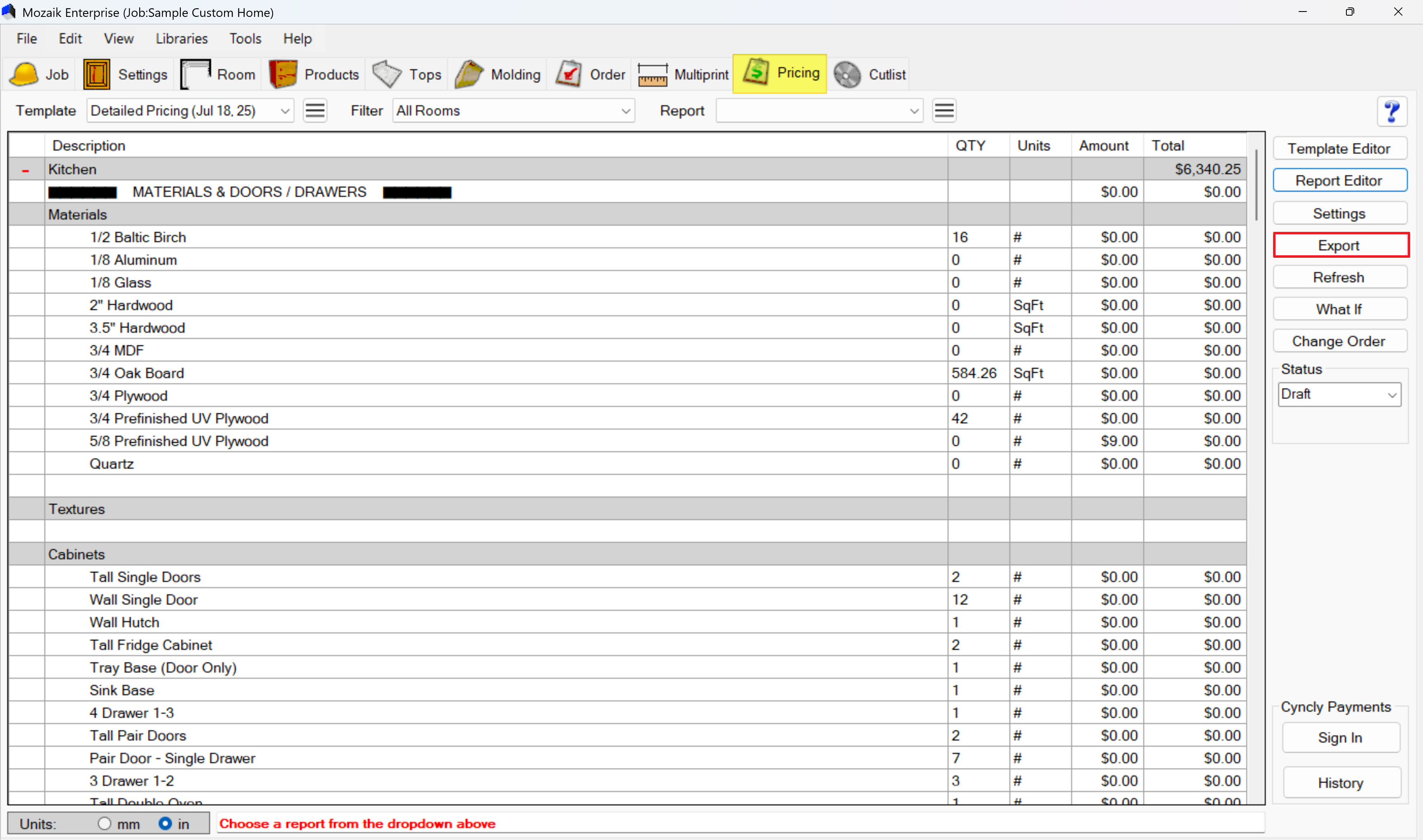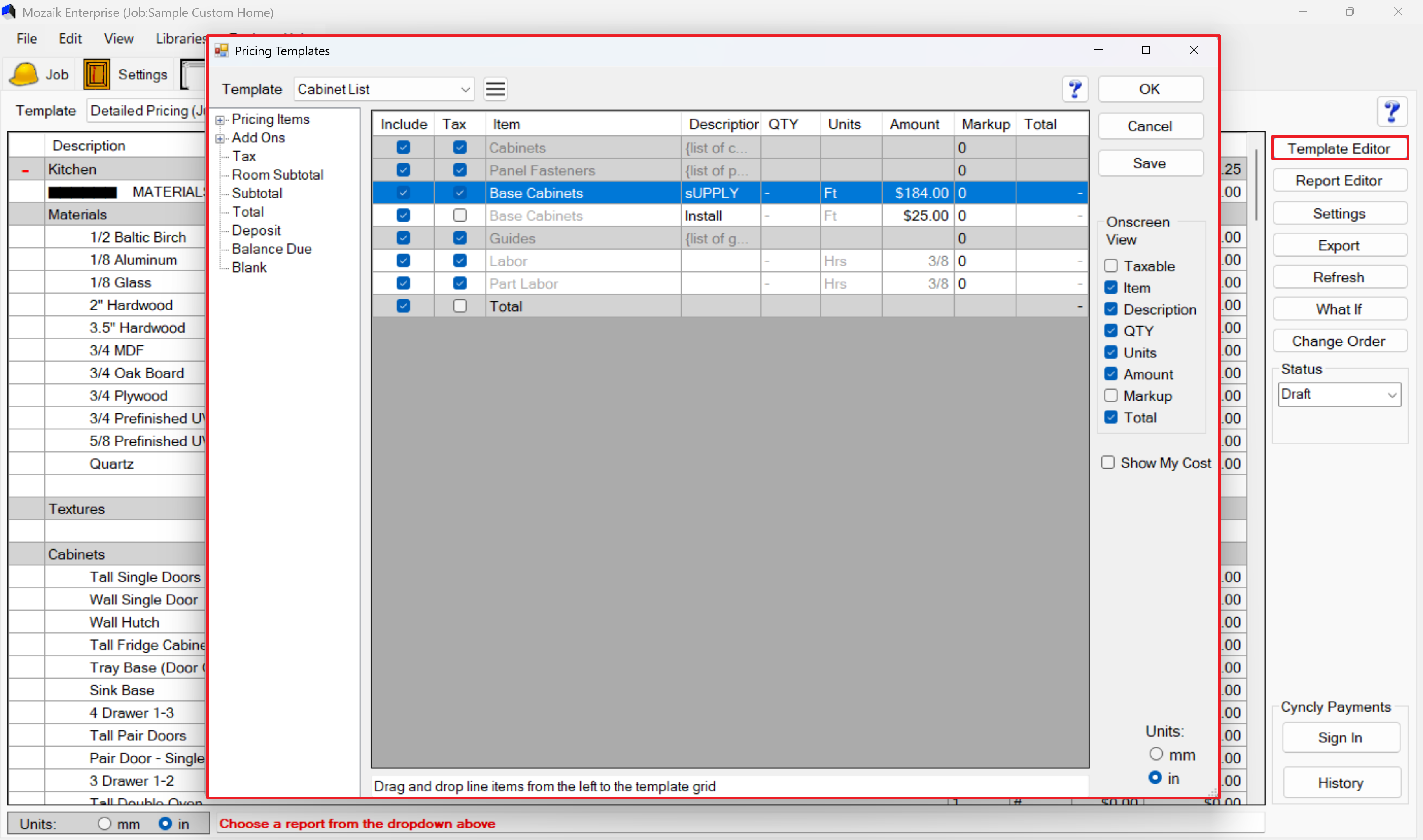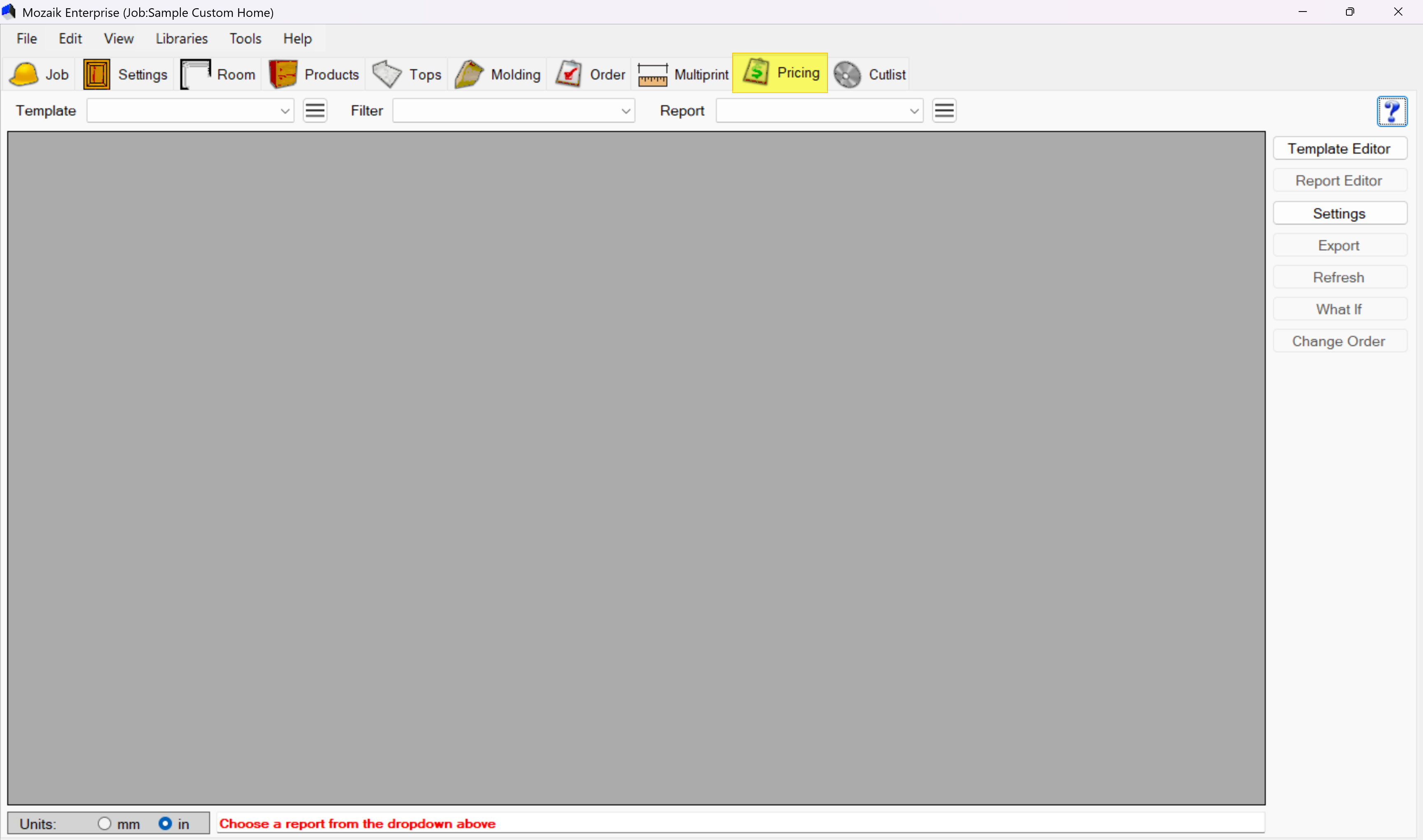 Click on the Pricing tab in the main toolbar at the top of your Mozaik window.