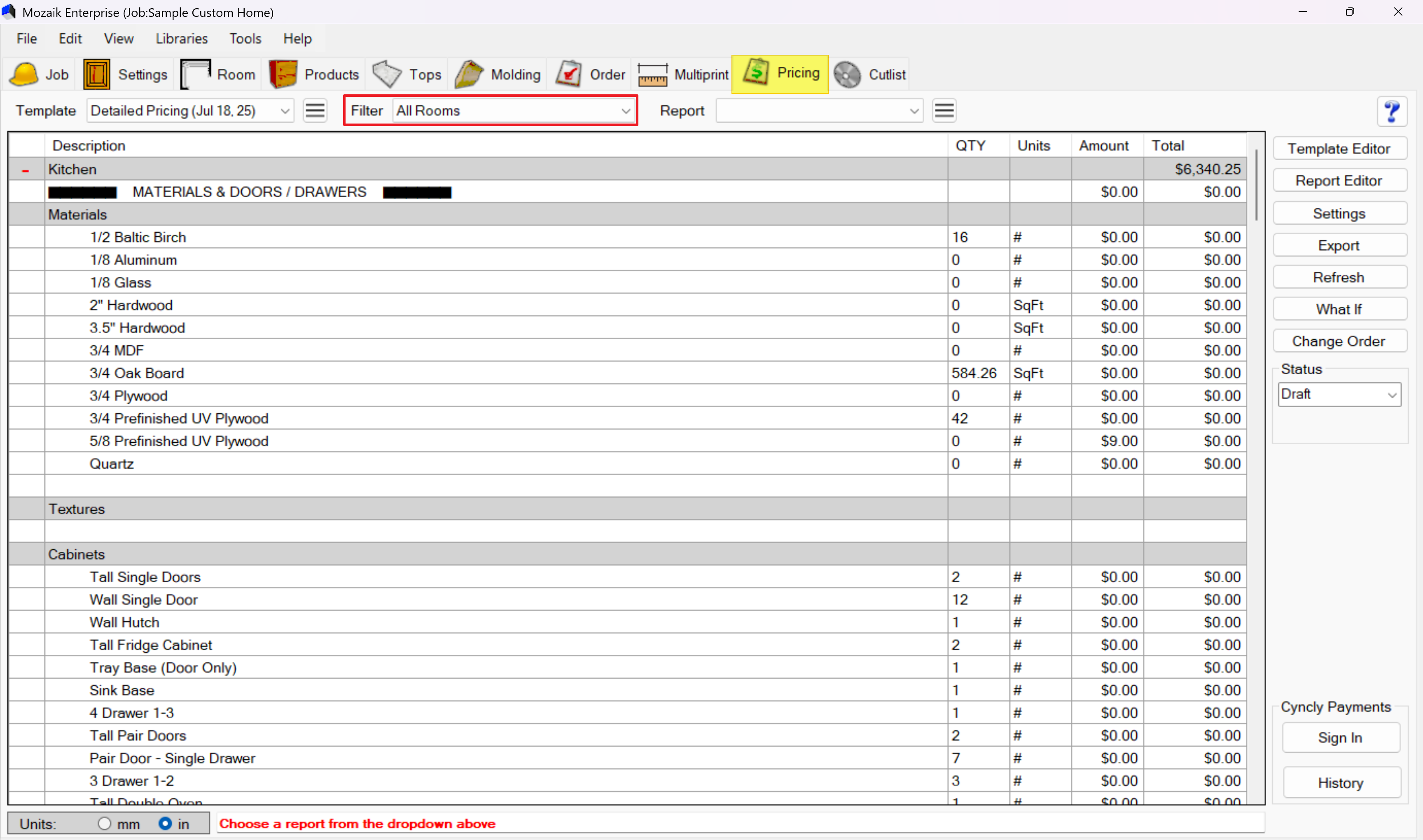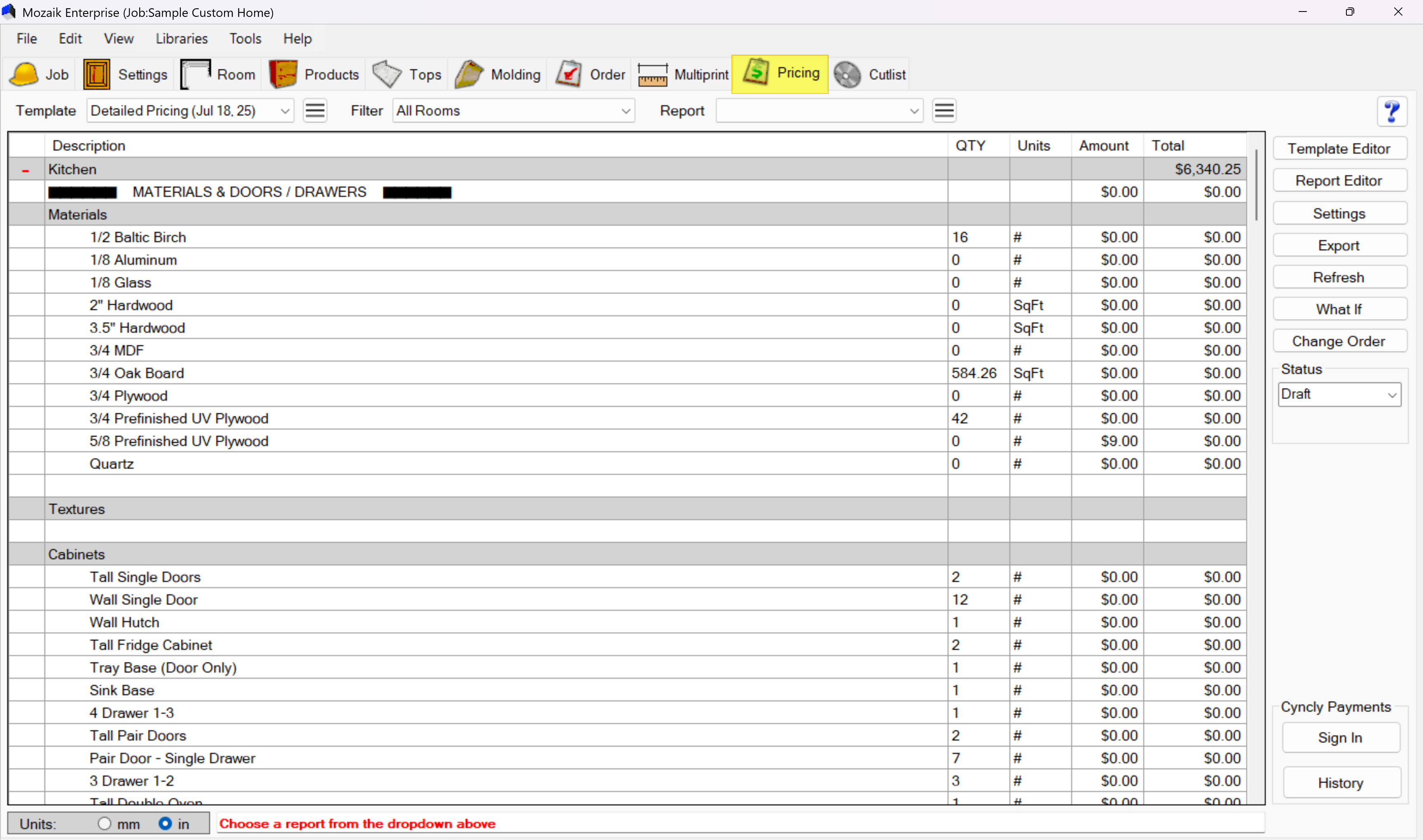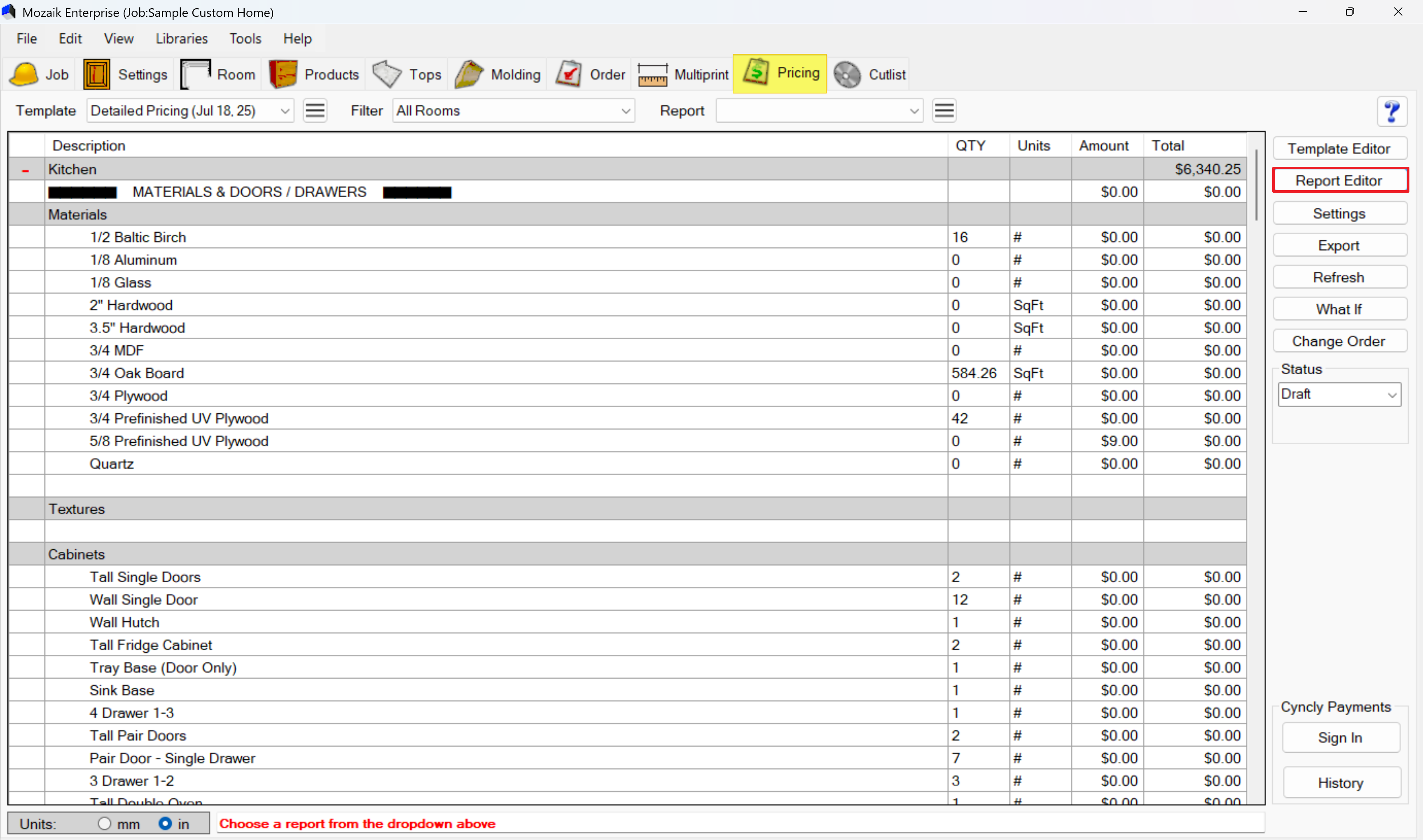 Click on the Pricing tab in the main toolbar at the top of your Mozaik window.