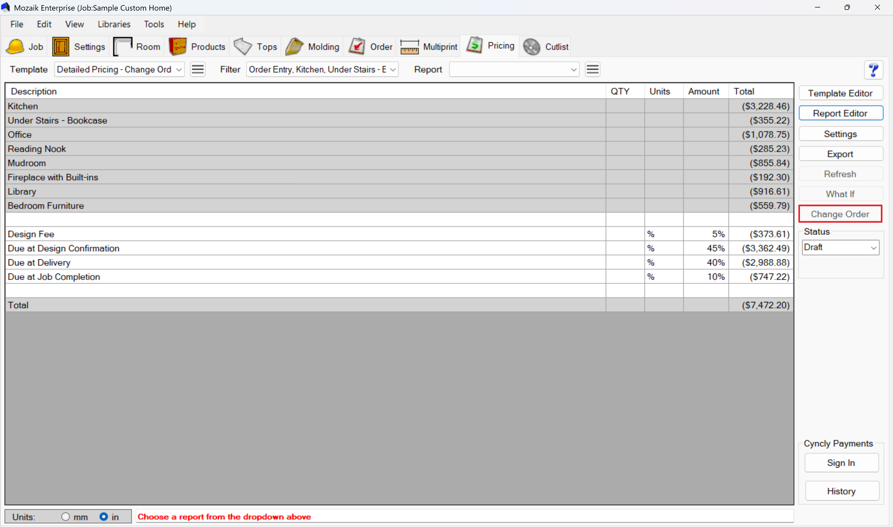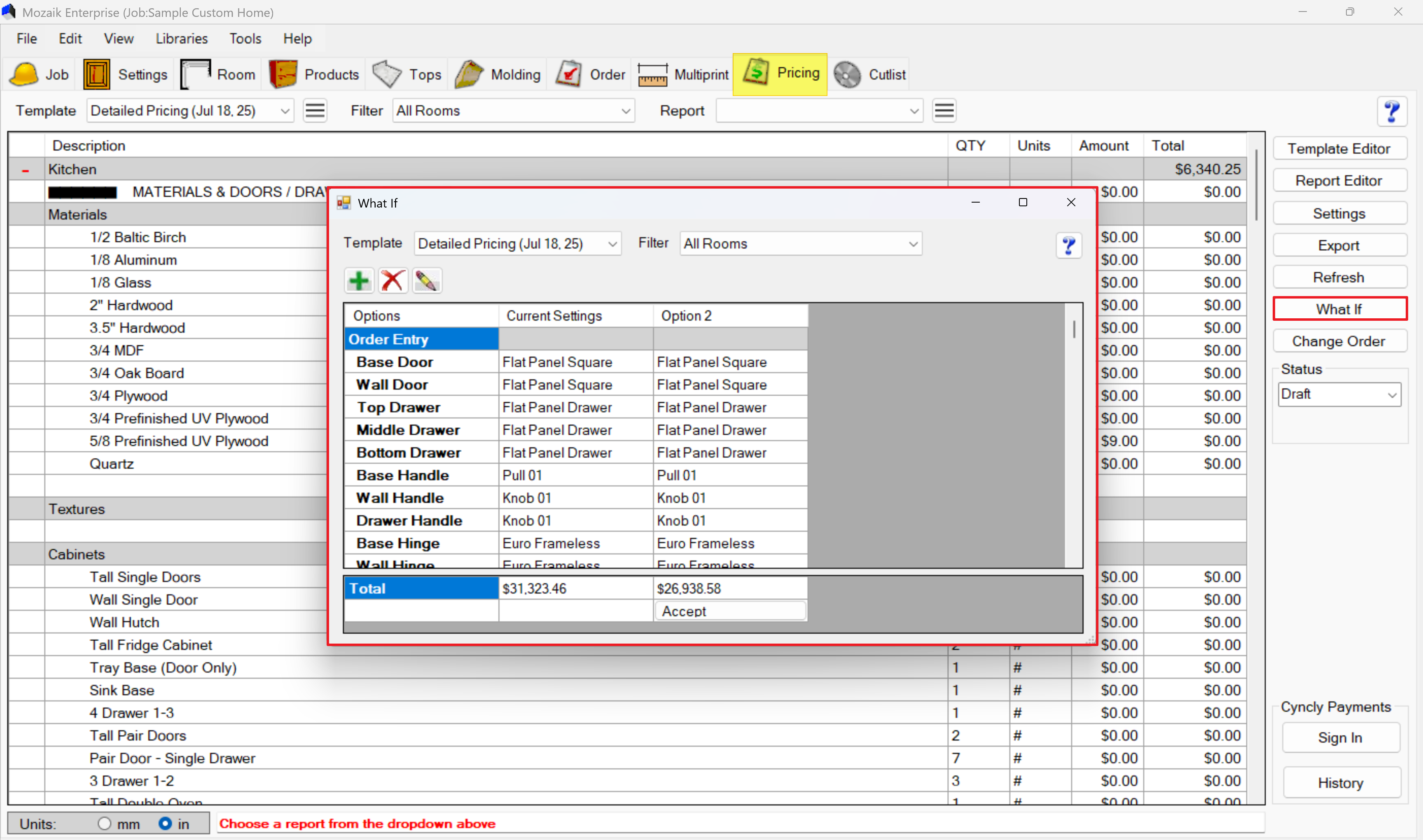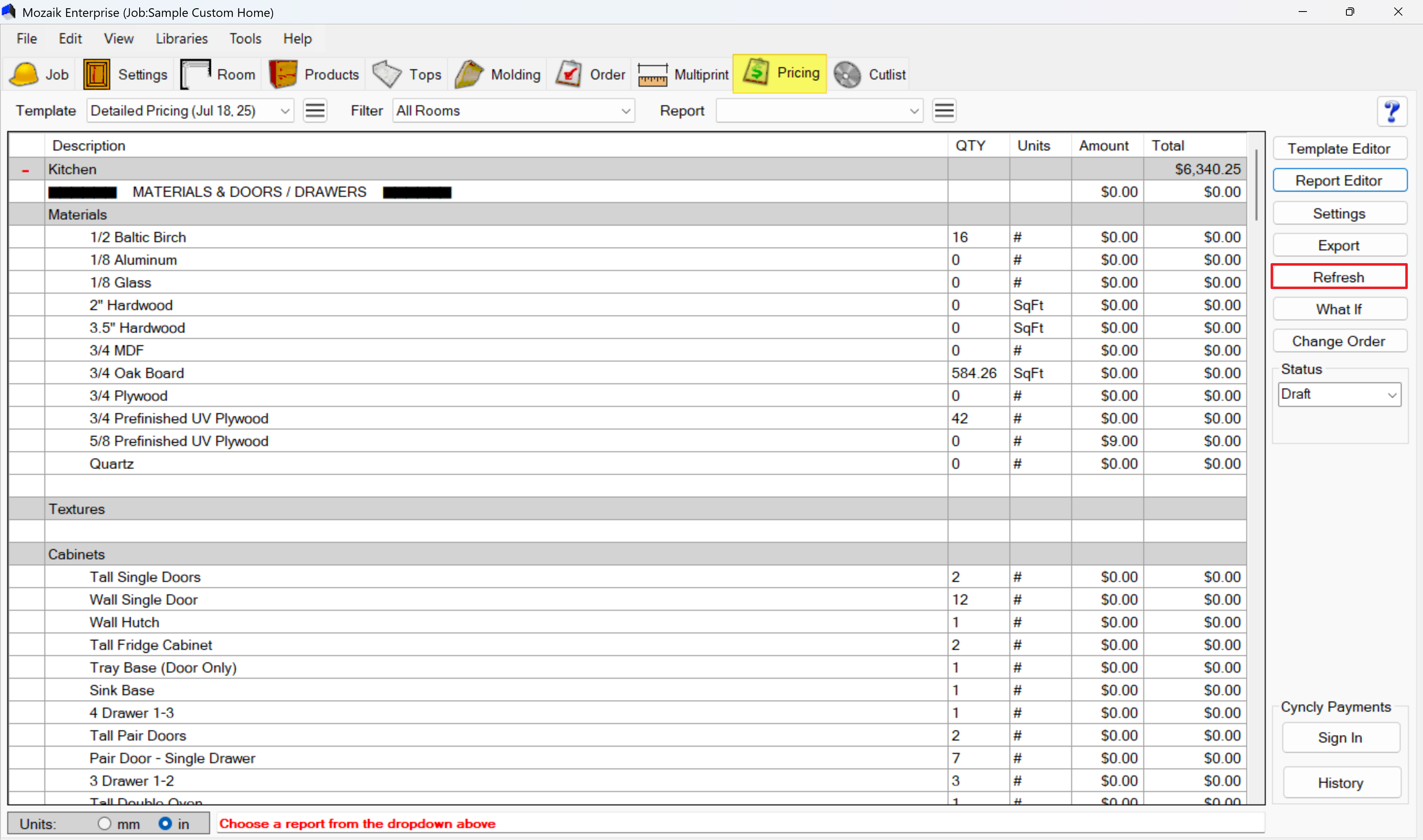 - Mozaik automatically generates a pricing run based on your current design